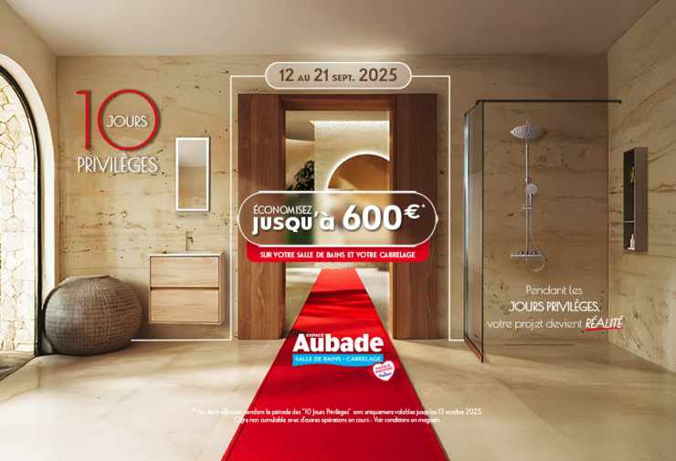 Du 12 au 21 septembre 2025, profitez jusqu’à 600 € d’économies sur une large sélection salle de bains et carrelage. Dix jours pour lancer votre rénovation, moderniser votre salle d’eau ou donner du cachet à vos pièces, tout en maîtrisant votre budget.